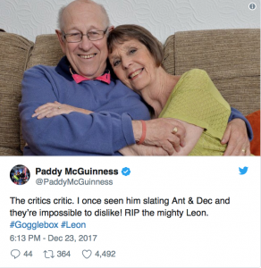 - The Christmas special which aired on Sunday was dedicate to Leon’s memory.